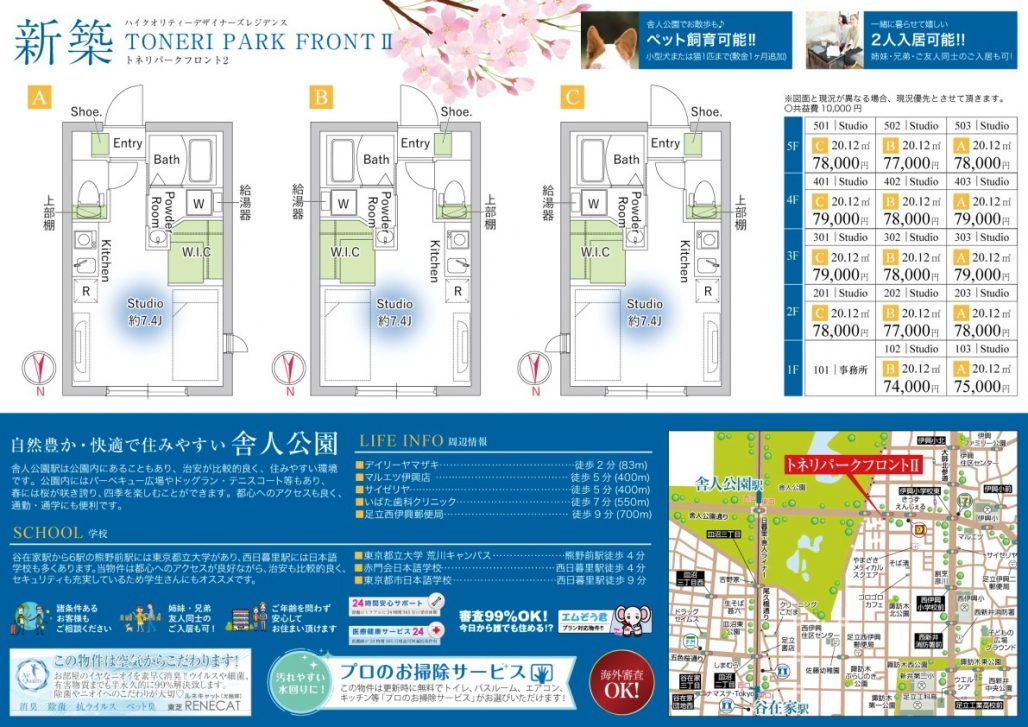 近隣には舎人公園もあり自然豊か環境で快適に過ごせる環境です。