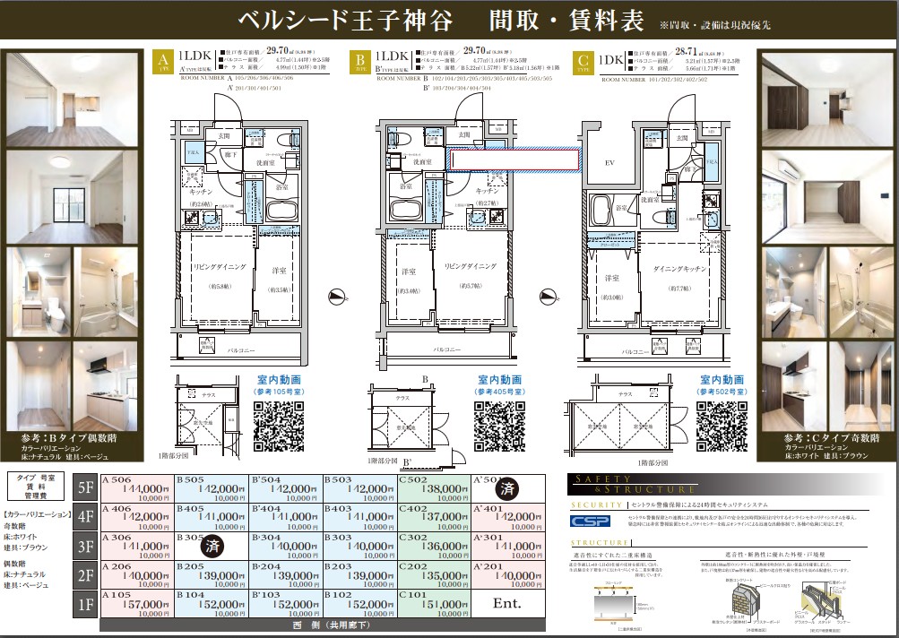 専有面積:28.71㎡~29.70㎡