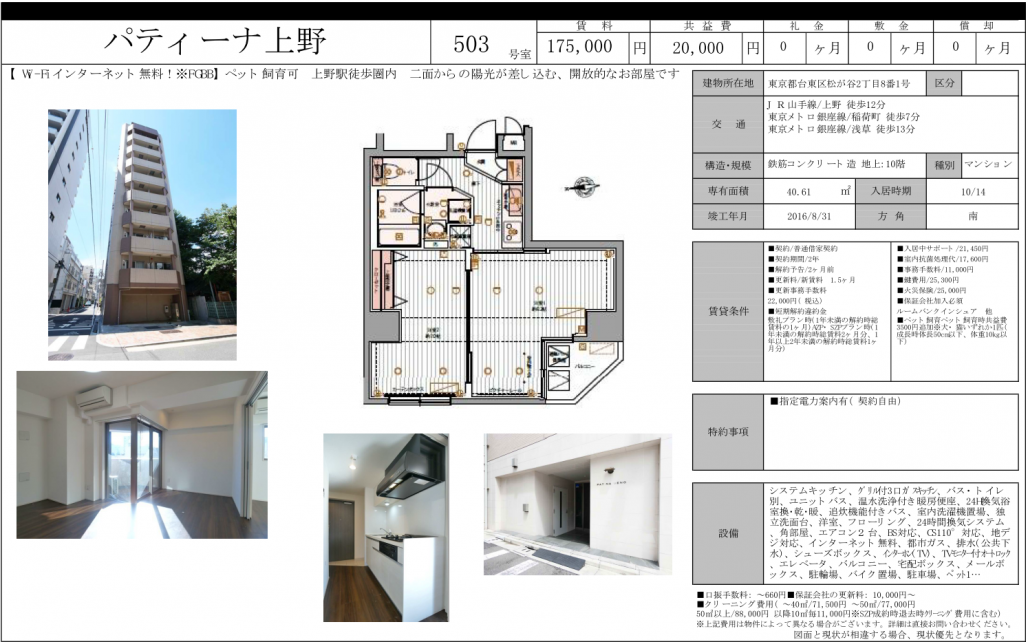 【上野エリア ペット可・敷金なし礼金なしの初期安物件】Patina上野[パティーナ上野]2K