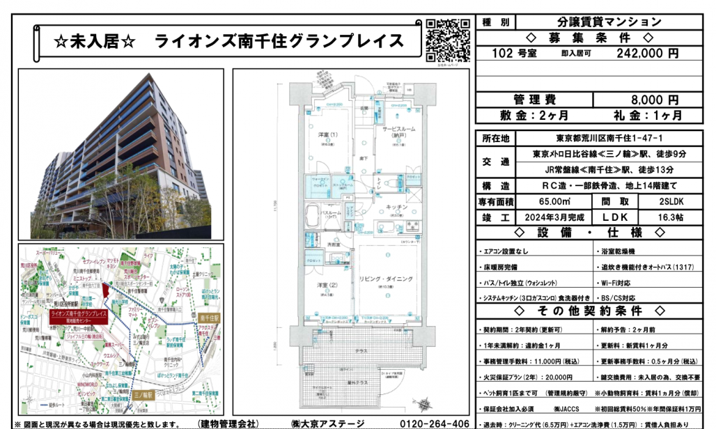 2024年3月築の高級分譲賃貸マンション。