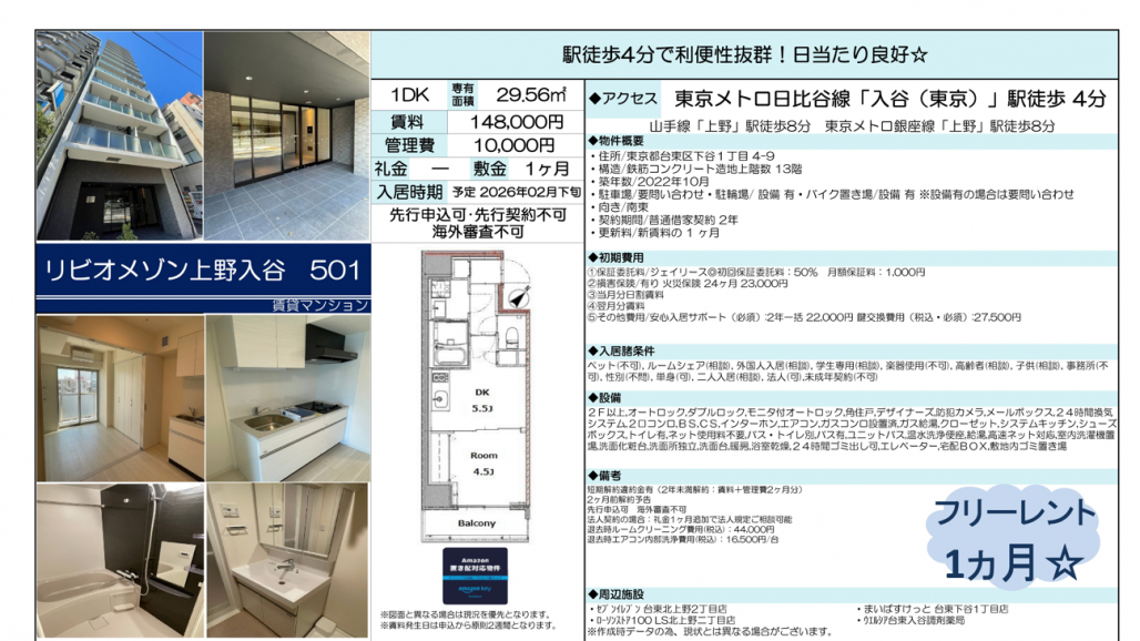 フリーレント:1ヶ月