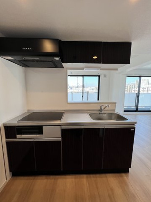 キッチンには3口IHコンロ+グリル付きのシステムキッチンを採用しています。