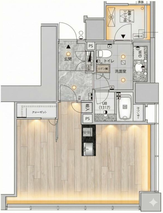 今回ご紹介するのは、3階部分・1LDKタイプのお部屋です。