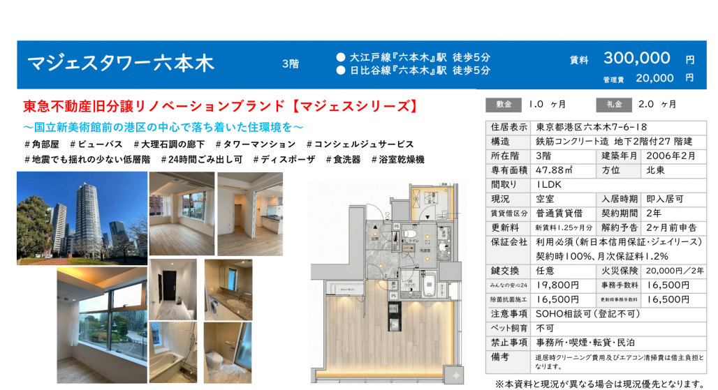 東京都港区六本木7丁目に位置する「マジェスタワー六本木」のご紹介です。