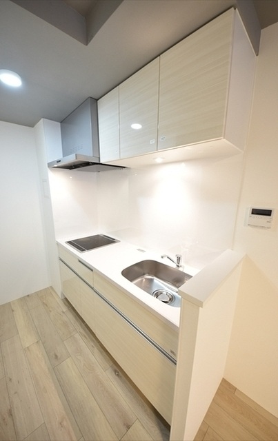 キッチンは収納付き2口IHシステムキッチン。