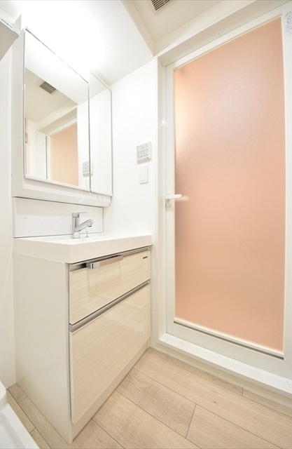 浴室換気乾燥機、24時間換気システム、独立洗面台は鏡裏収納付きです。
