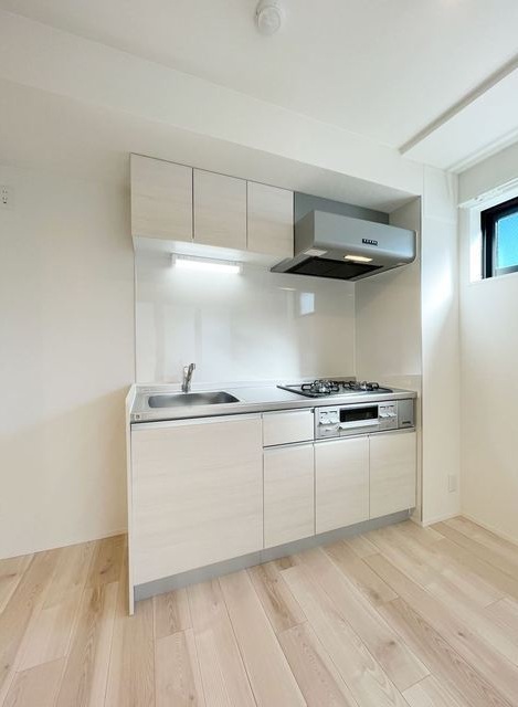キッチンは3口ガスコンロのシステムキッチン。