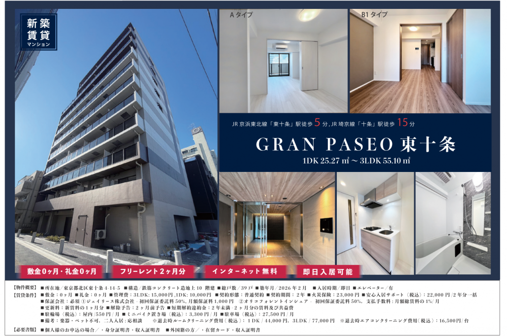 東京都北区エリアに誕生した新築デザイナーズマンション「グランパセオ東十条」のご紹介です。