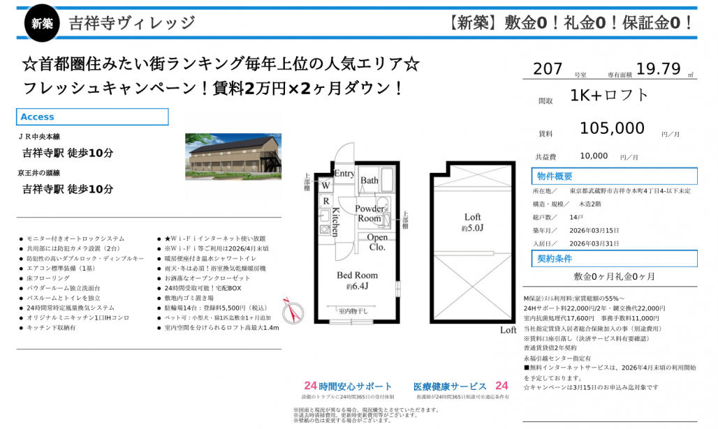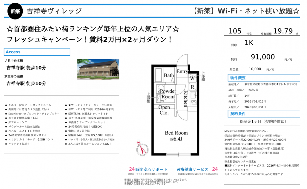 吉祥寺エリアでお部屋探しをされている水商売・ナイトワーク勤務の方に向けて、人気エリア×新築×好条件が揃った賃貸物件をご紹介いたします。