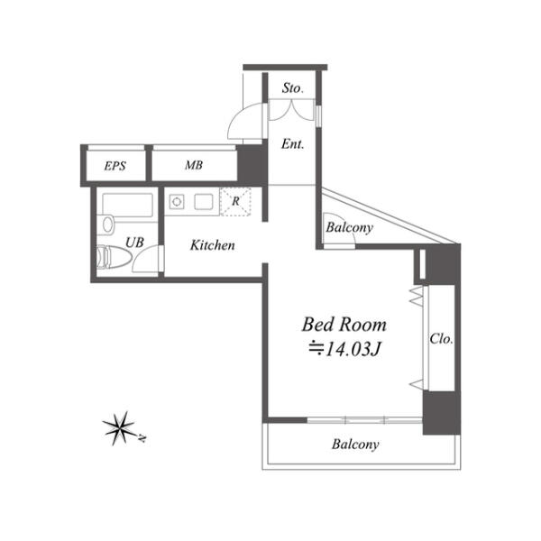 広めの室内の1Kタイプ。