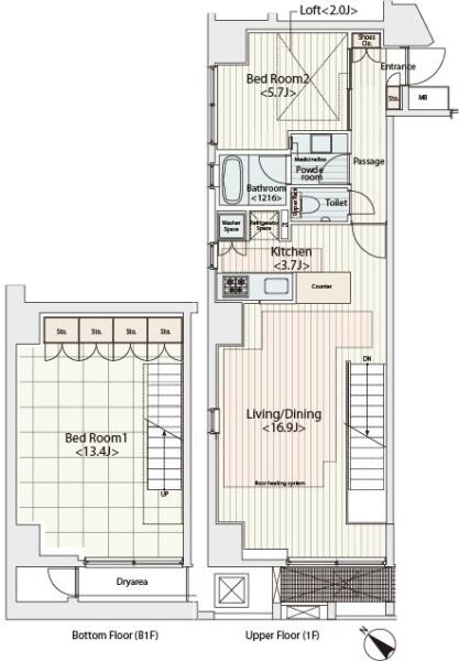約64m²~約80m²もあるメゾネットタイプのお部屋です。