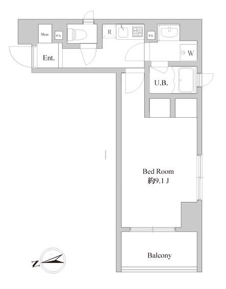 29.63m²の広めの1Kタイプ、洋室は9.1帖!