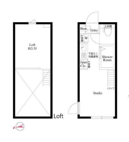 室内は3.5帖のロフト付きのStudioタイプ。