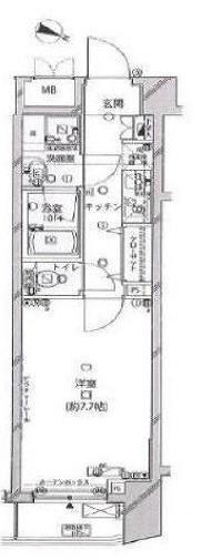 室内は洋室約7.7帖の1Kタイプ。
