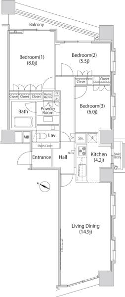 間取りもこのエリアでは貴重な3LDKタイプ。