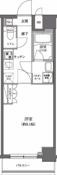 間取りはオーソドックスな1Kです。
