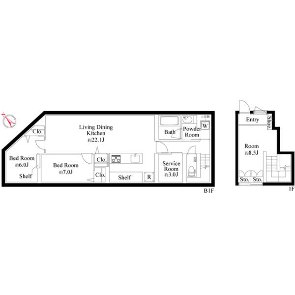 1フロア1住戸のプライベート空間、メゾネットタイプの3LDKです。
