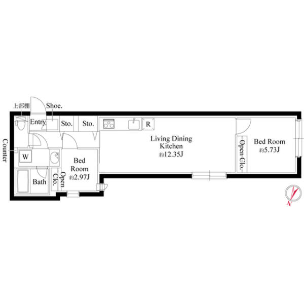 間取りは2DKです。