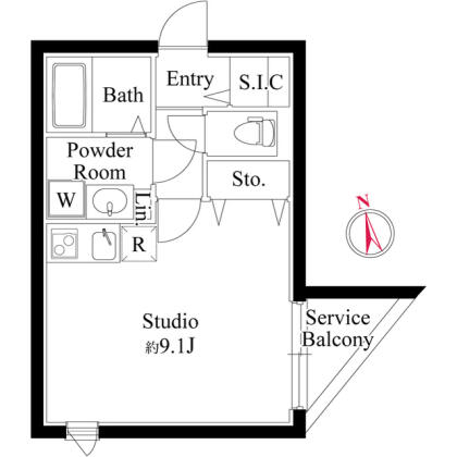 広々9.1帖の間取り&シューズインクローゼット付きの1Rタイプです。