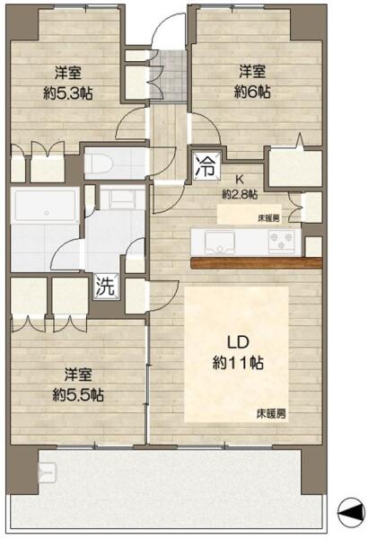 間取りはゆったり3LDKです。